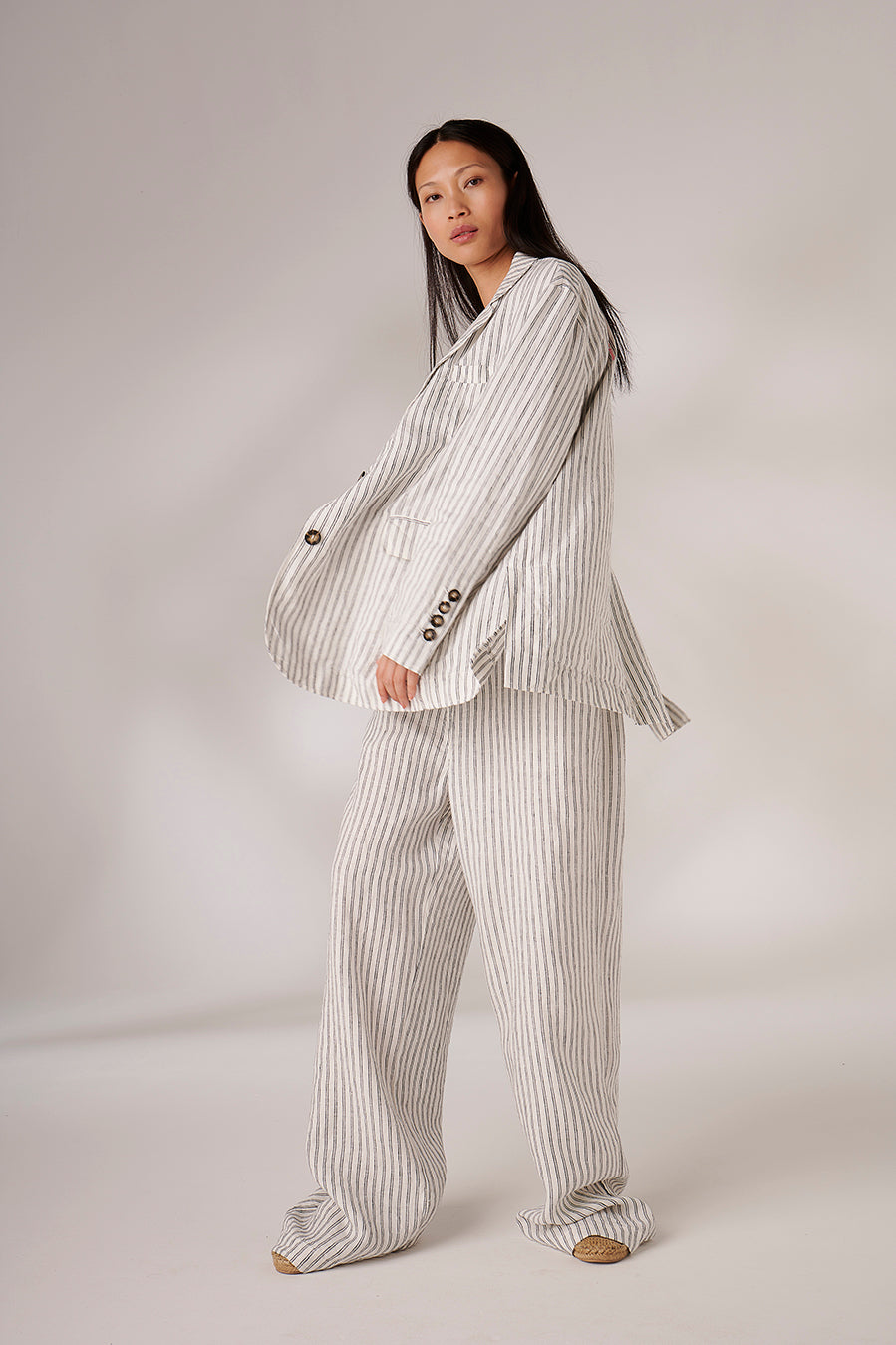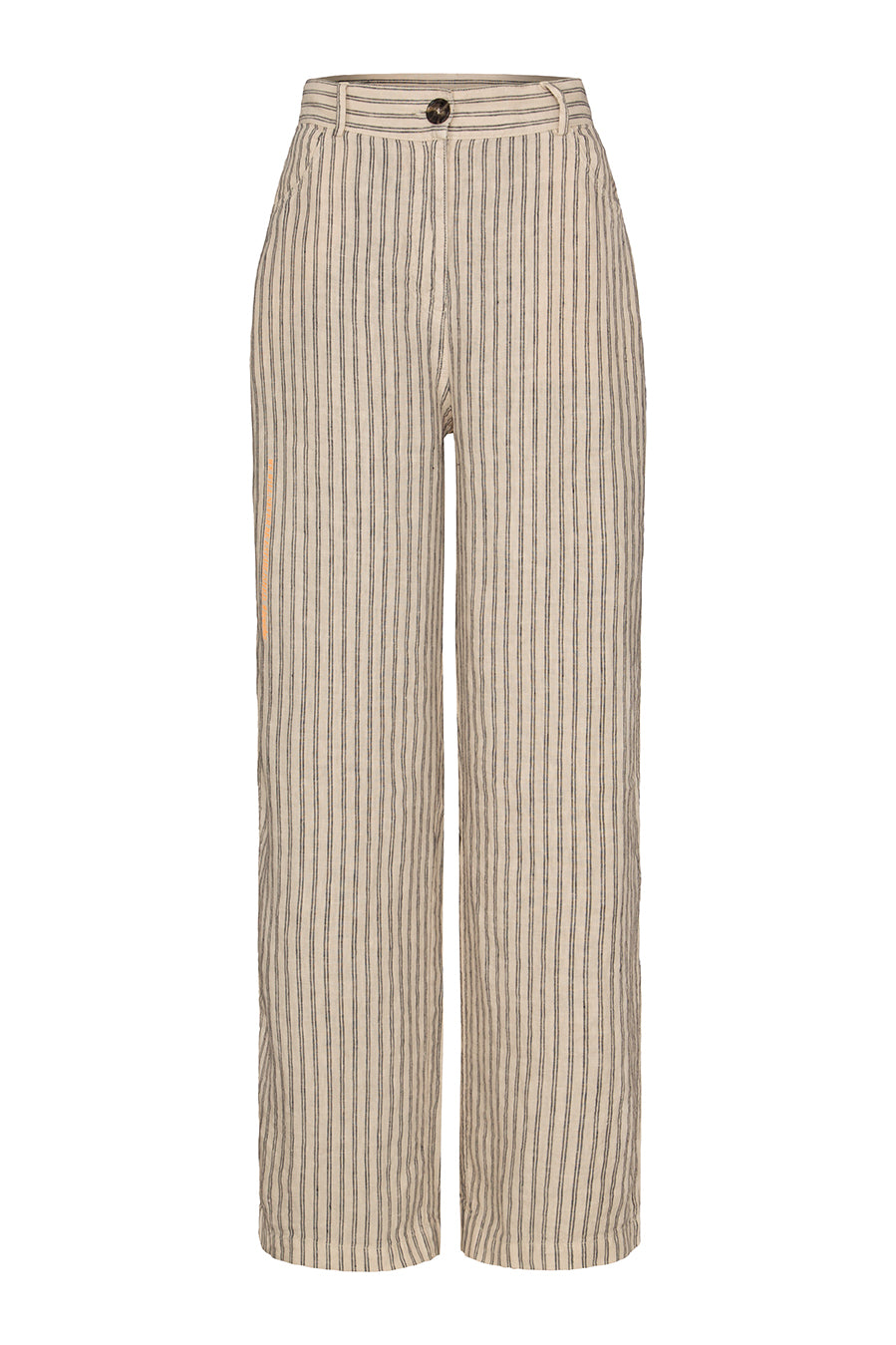 Erleben Sie sommerlichen Komfort mit der Hose Stripe in White. Gefertigt aus 100% hochwertigem Leinen, sorgt sie für ein angenehm leichtes Tragegefühl, das Ihre Haut atmen lässt. Das lockere, gestreifte Design verleiht jedem Outfit eine frische, entspannte Note – perfekt für warme Tage.