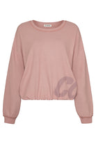 Ein kuscheliger Lieblingspulli in zartem rosa-Ton: Dieser Sweater punktet mit dekorativen Falten am Saum und einem seitlichen „cosy“-Schriftzug am Bund – ein verspieltes Detail mit lässigem Charme.