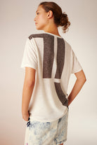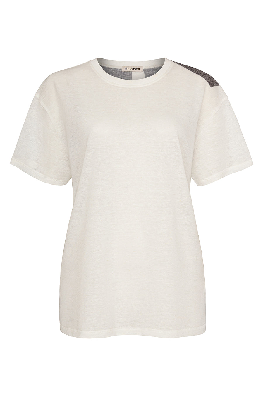 Das leichte T-Shirt besticht durch den besonderen Effekt, der sich aus der Kombination von Leinen und Baumwolle ergibt. Auf der Rückseite befindet sich ein großflächiger, grafischer Druck mit den Buchstaben "LIV".