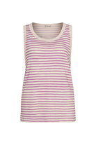 Das angenehme Tank Top trägt einen unregelmäßigen Streifen, der einen subtilen Vintage-Effekt erzeugt. Auf der Rückseite befindet sich ein markanter, kontrastfarbiger Druck.