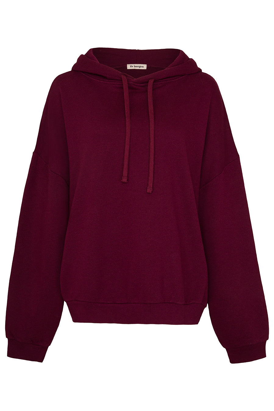 Der Hoodie überzeugt mit seinem lässig-kastigen Schnitt. Auf der Rückseite setzt der Print „Come and liv with us“, unterlegt mit einem weißen Square, ein klares visuelles Statement – simpel, stark, einprägsam.