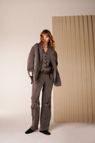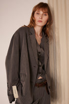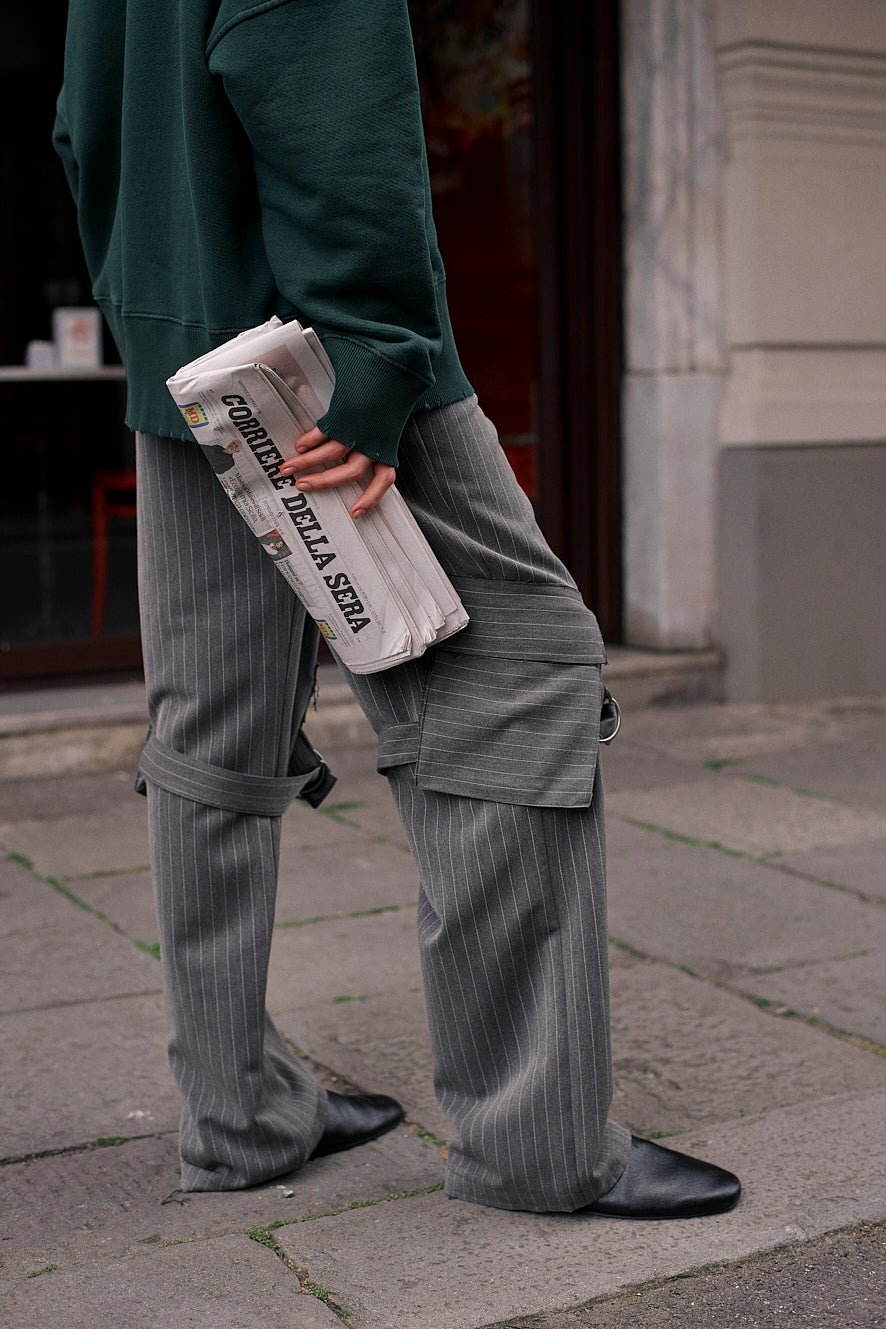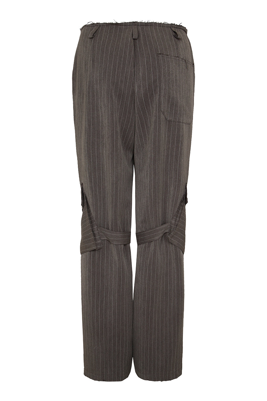 Klassisch trifft Streetstyle: Diese graue Anzugshose mit feinem Nadelstreifen bringt Eleganz aufs nächste Level. Markante Schnallen an den Knien und offene Nähte sorgen für edgy Vibes, während der lockere Schnitt maximalen Komfort und Bewegungsfreiheit bietet. Mit praktischen Taschen und einem urbanen Look ist sie das perfekte Piece für alle, die Stil und Coolness kombinieren wollen.