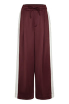 Diese Track Pants in bordeaux kombiniert mit weißen Seitenstreifen und lässigen Frontfalten – für einen sportlich-coolen Look mit Komfortfaktor. Ideal für Tage, an denen du entspannt, aber trotzdem stylisch unterwegs sein willst.