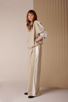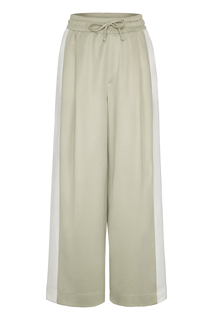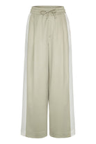 Diese Track Pants in Greige kombiniert mit weißen Seitenstreifen und lässigen Frontfalten – für einen sportlich-coolen Look mit Komfortfaktor. Ideal für Tage, an denen du entspannt, aber trotzdem stylisch unterwegs sein willst.