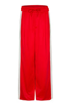 Diese Track Pants in rot kombiniert mit weißen Seitenstreifen und lässigen Frontfalten – für einen sportlich-coolen Look mit Komfortfaktor. Ideal für Tage, an denen du entspannt, aber trotzdem stylisch unterwegs sein willst.