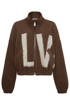 Die Jacke LVBRGN in braun und creme verleiht deinem Outfit eine stilvolle Note. Das kunstvolle Jacquard-Muster sorgt für dezenten Blickfang, während hochwertige Wolle dich angenehm warm hält. Ein ausdrucksstarkes Piece für anspruchsvolle Looks – zeitlos, feminin, besonders.