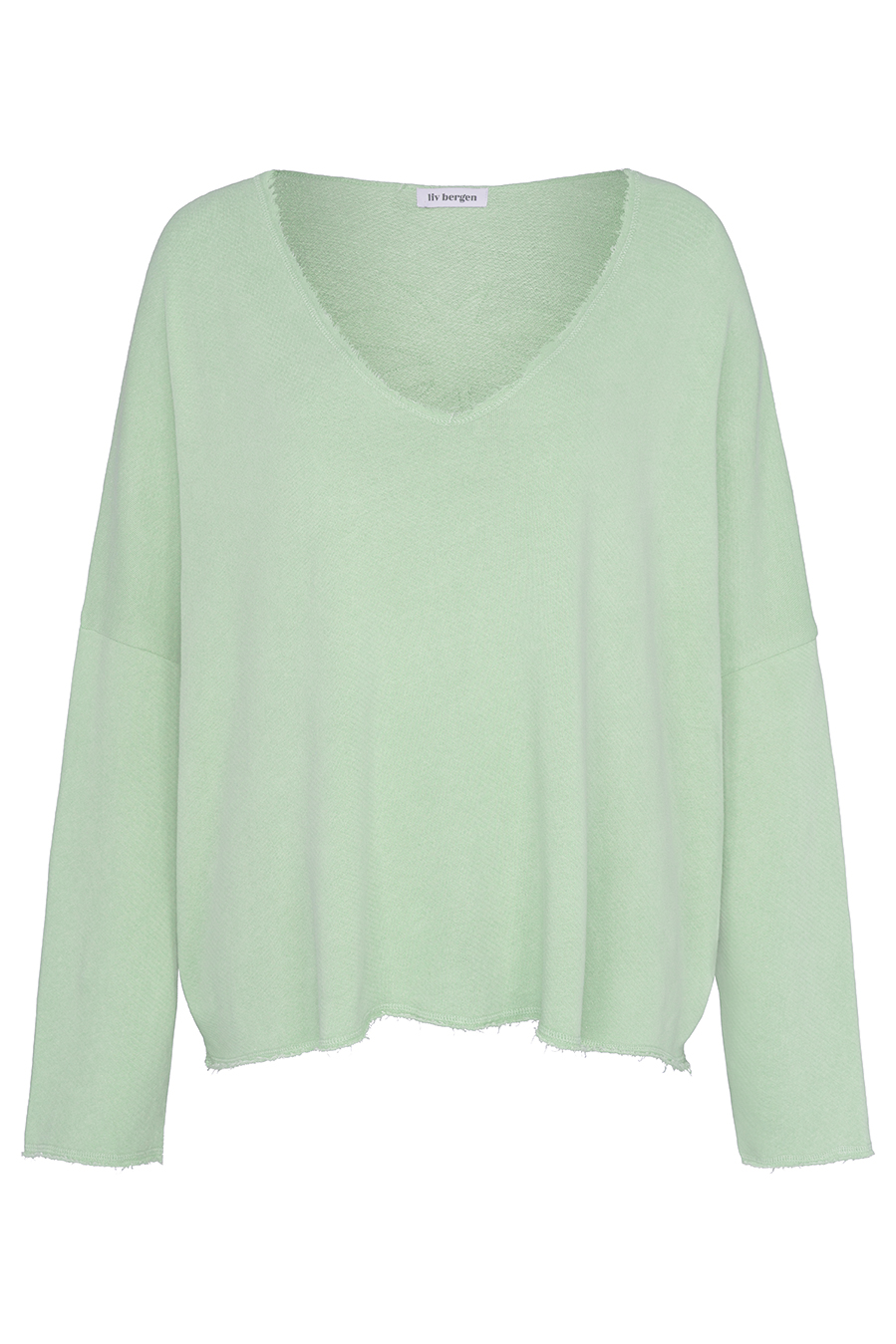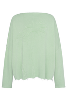 Das Longsleeve hat einen großzügigen V-Ausschnitt. Auf der Rückseite sind Palmen aufgenäht. Der Open-Cut-Stil verleiht dem Shirt fransige Akzente.