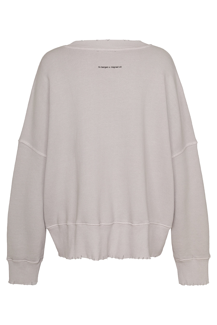 lässig destroyed, mit dezentem liv bergen x liv bergen Print – dieser Pullover bringt frischen Style in deinen Alltag. Perfekt für entspannten, auffälligen Look!
