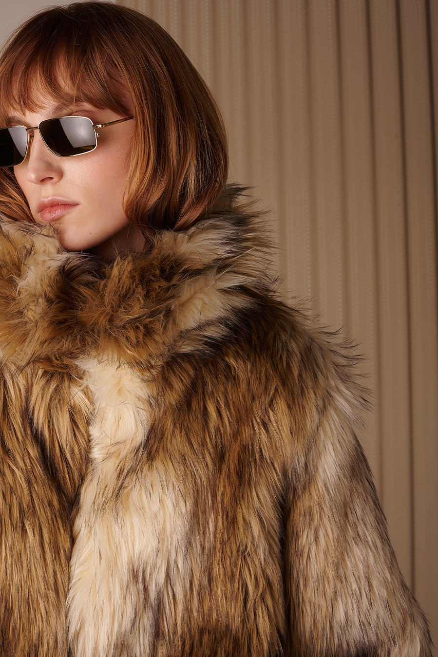 Kuschelig, stylisch, ready for cold days: Die Felljacke in angesagtem Fox-Ton kommt mit frechem Stehkragen und maximalem Cozy-Faktor. Für Looks, die selbst graue Wintertage strahlen lassen.