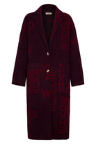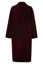 Dieser Mantel in warmem Bordeaux setzt mit dem Schriftzug „come and liv with us“ einen verspielten Akzent. Ein fröhlicher Hingucker, der Stil, Gemütlichkeit und gute Laune perfekt verbindet.